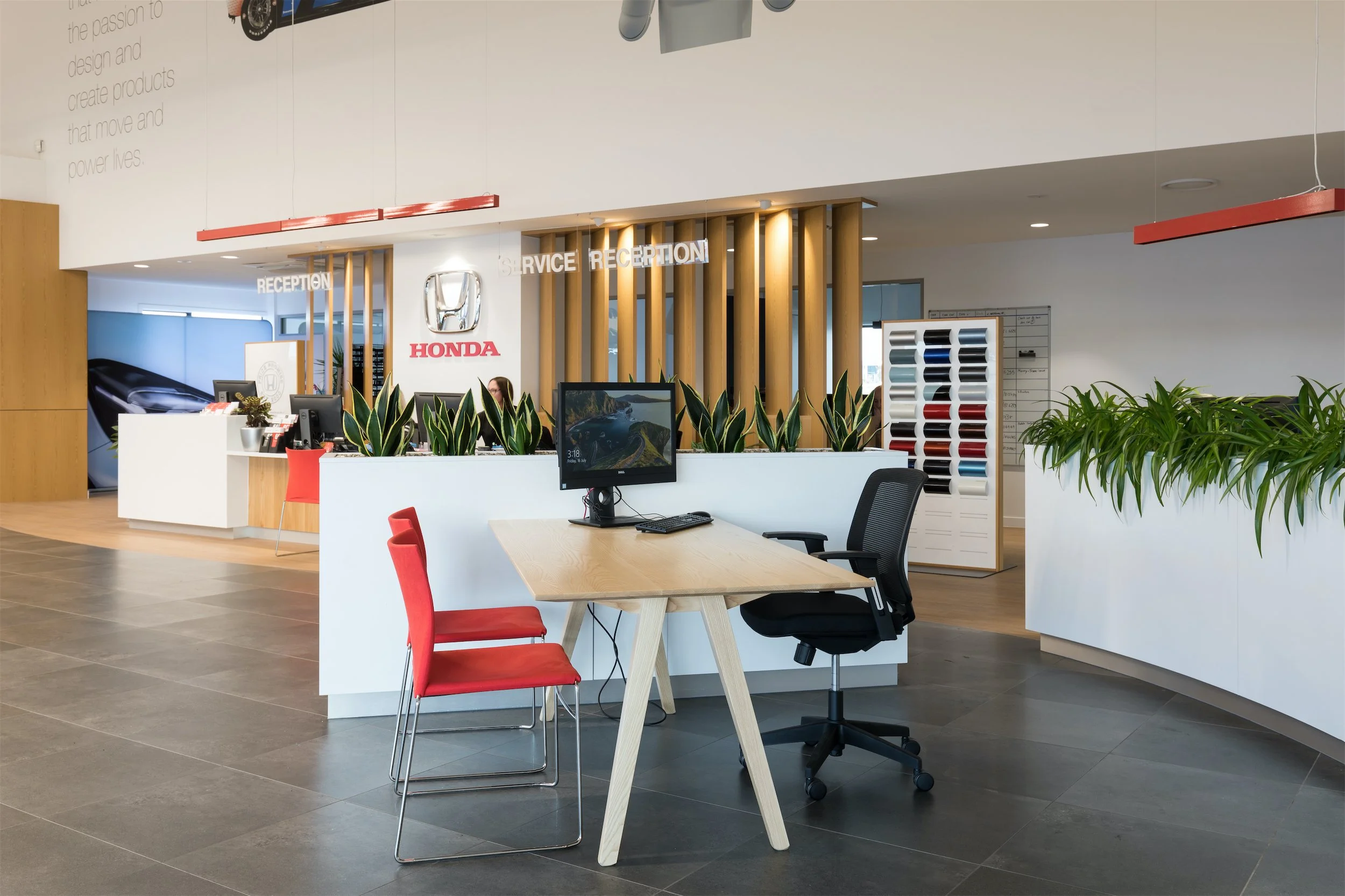 When Honda New Zealand Chief Executive Nobu Sonoda approached us to re-design their flagship branch on the North Shore his main criteria was the customer’s first impression was that it should look like that of a five-star hotel. His reasons for this were that a Honda customer welcome should be second to none so as to reflect the respective the brand has for its customers. This design ethos needed to be woven into an iconic pyramid-shaped space that had been untouched for 30 years.