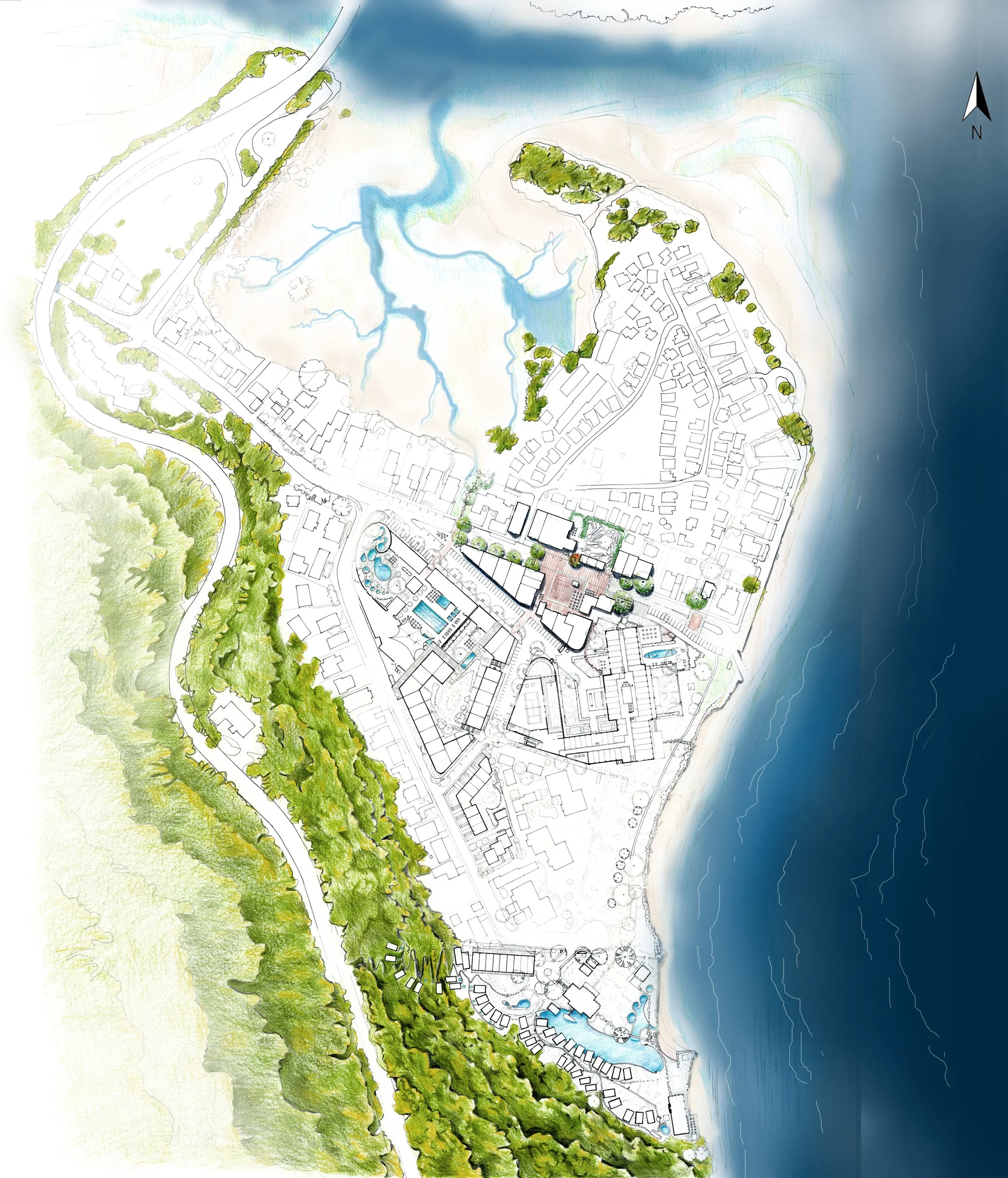 Our vision highlights and makes the most of the unique aspects of the location, such as healthy mineral water, natural hot springs, a clean seaside environment etc. The master plan has several elements that other towns in the area don’t have, a small public square giving the town a true centre, retail close to the seaside and native bush. A deliberate strong emphasis on health and well-being makes this the capital of health and well-being for the North Island.